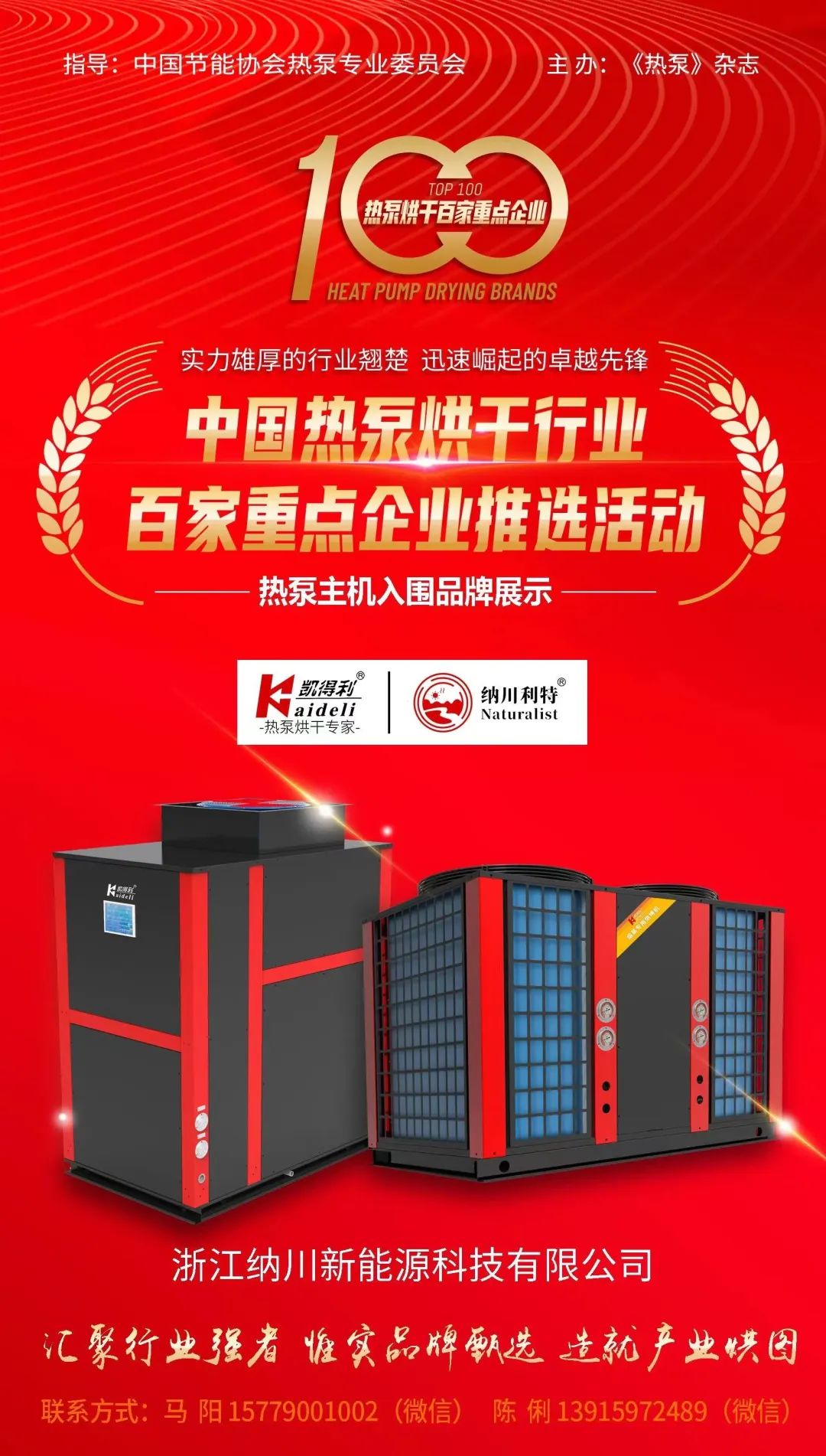 近日,浙江納川新能源入選由中國節能協會熱泵專業委員會指導、《熱泵》雜志主辦的中國熱泵烘干行業百家重點企業推選活動。